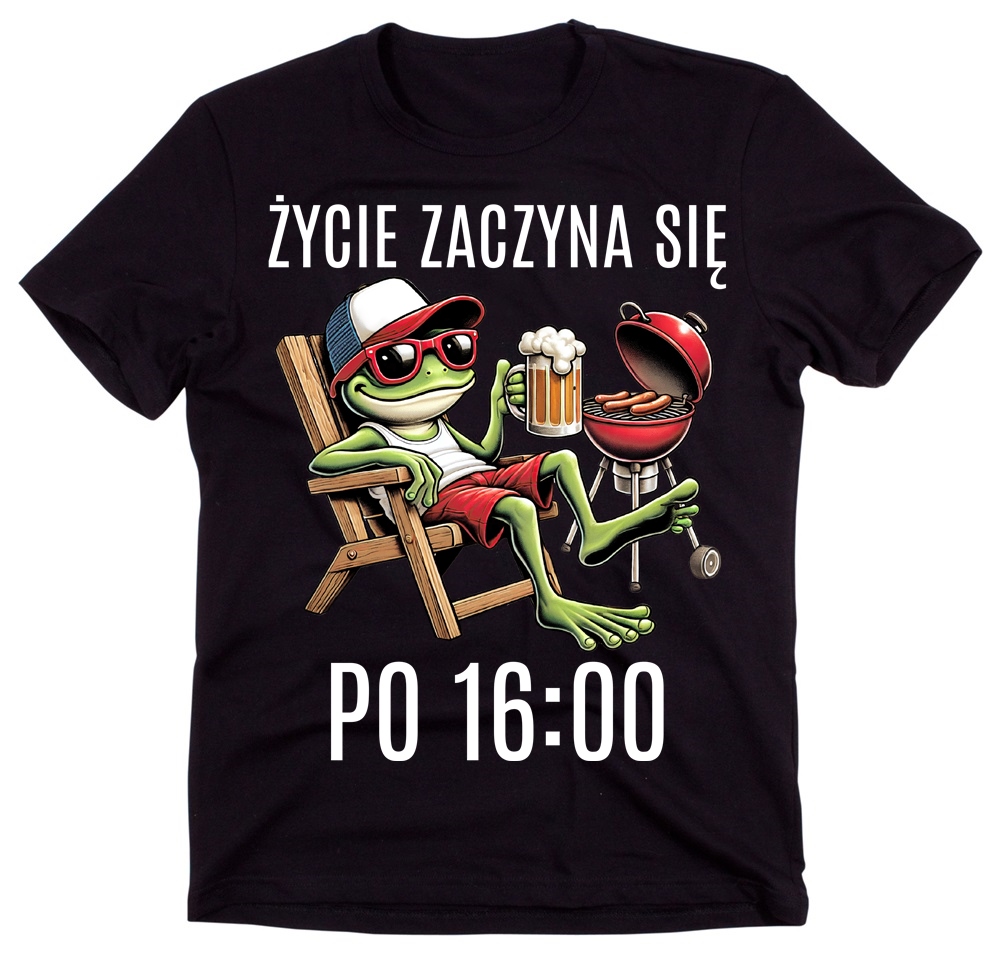 Śmieszna męska koszulka - życie zaczyna się po 16:00
