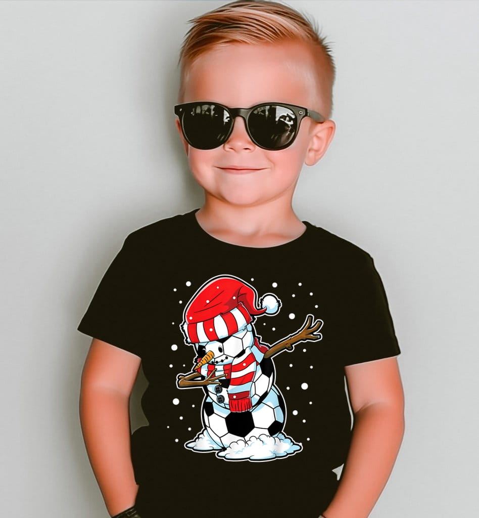 Świąteczna koszulka dla syna grającego w piłkę na mikołajki z bałwanek z piłek