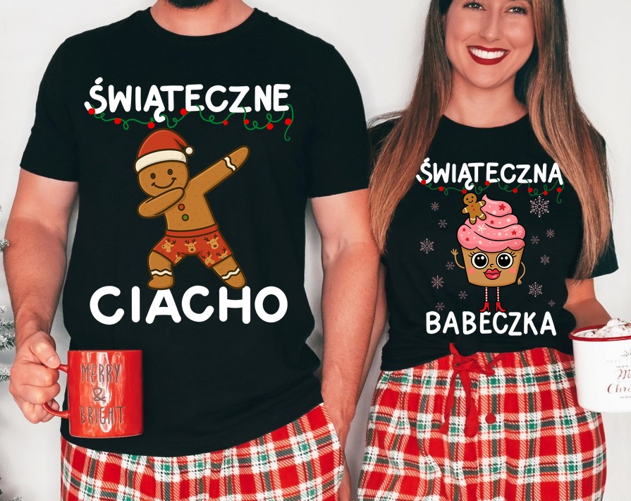 • Unikalny design: Koszulki zdobione są świątecznymi grafikami oraz napisami "Świąteczne Ciacho" i "Świąteczna Babeczka", które świetnie podkreślą charakter obdarowanych osób.