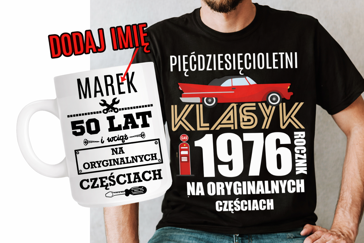 ZESTAW NA 50 URODZINY - KOSZULKA PLUS KUBEK Z IMIENIEM