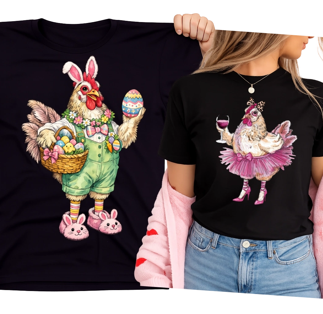 Zestaw dwóch koszulek dla pary na Wielkanoc z kogutem i kurką