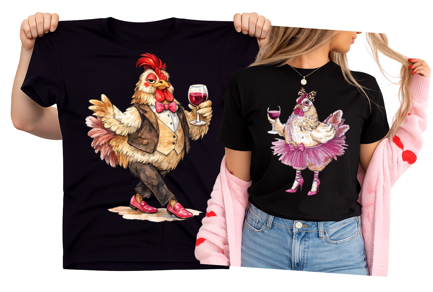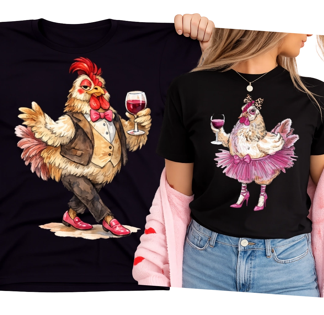 Zestaw dwóch koszulek dla pary na Wielkanoc z kogutem i kurką