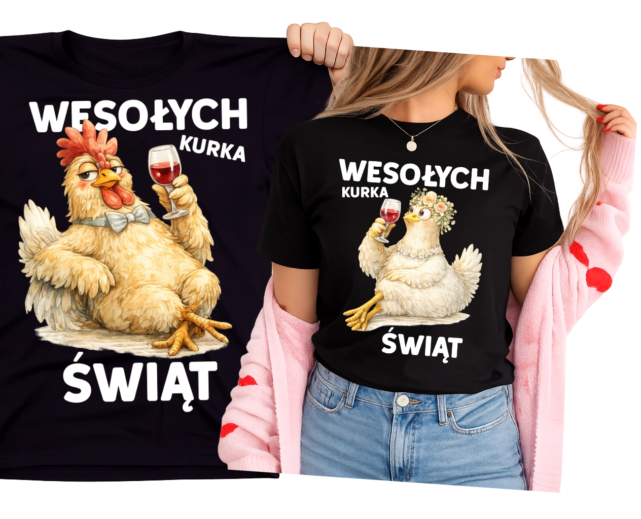 Zestaw koszulek na Wielkanoc dla pary WESOŁYCH KURKA ŚWIĄT ZZZ