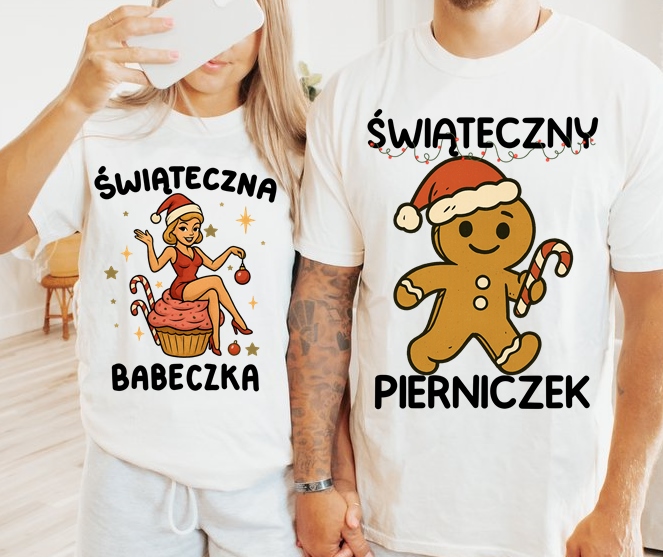 Zestaw dwóch koszulek świątecznych dla pary - "Świąteczny pierniczek" i "Świąteczna Babeczka"