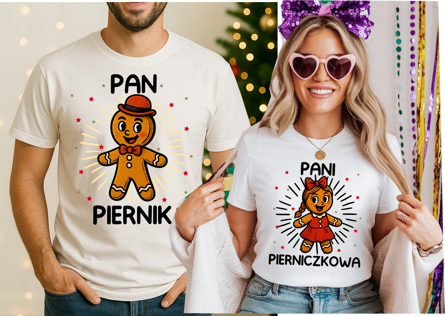 Zestaw koszulek świątecznych dla paty - PAN PIERNIK I PANI PIERNICZKOWA