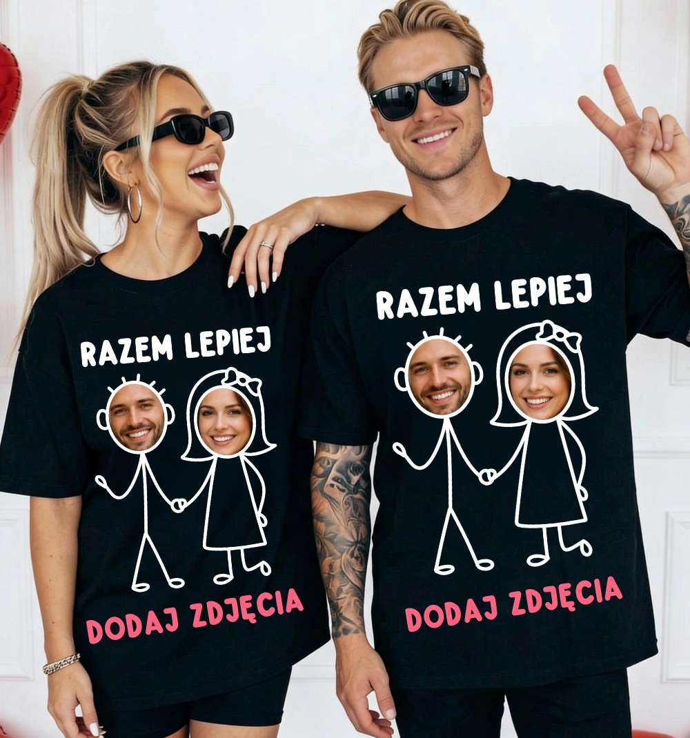Zestaw koszulek ze zdjęciami dla pary na Walentynki RAZEM LEPIEJ