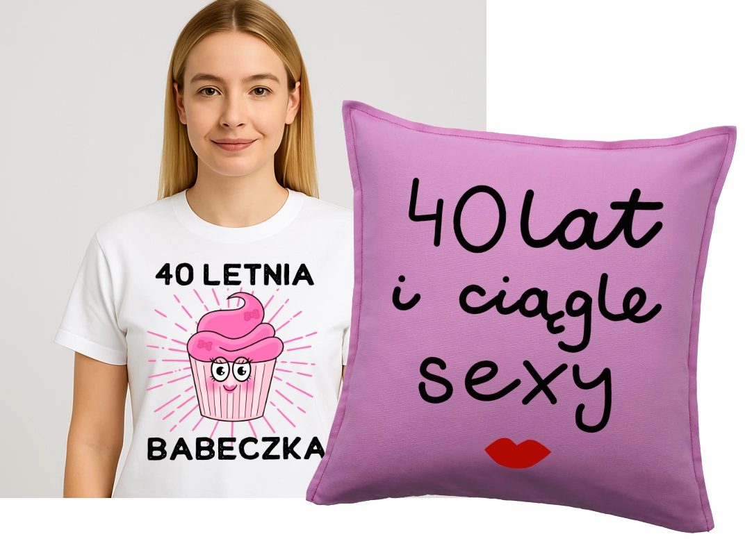 Zestaw na 40 urodziny - koszulka na 40 letnia babeczka plus poduszka na 40 urodziny