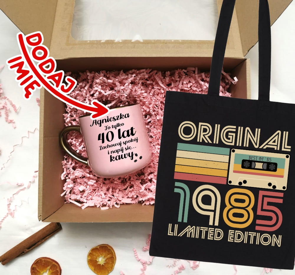 Zestaw prezentowy na 40 urodziny - kubek na 40 z imieniem oraz torba (1)