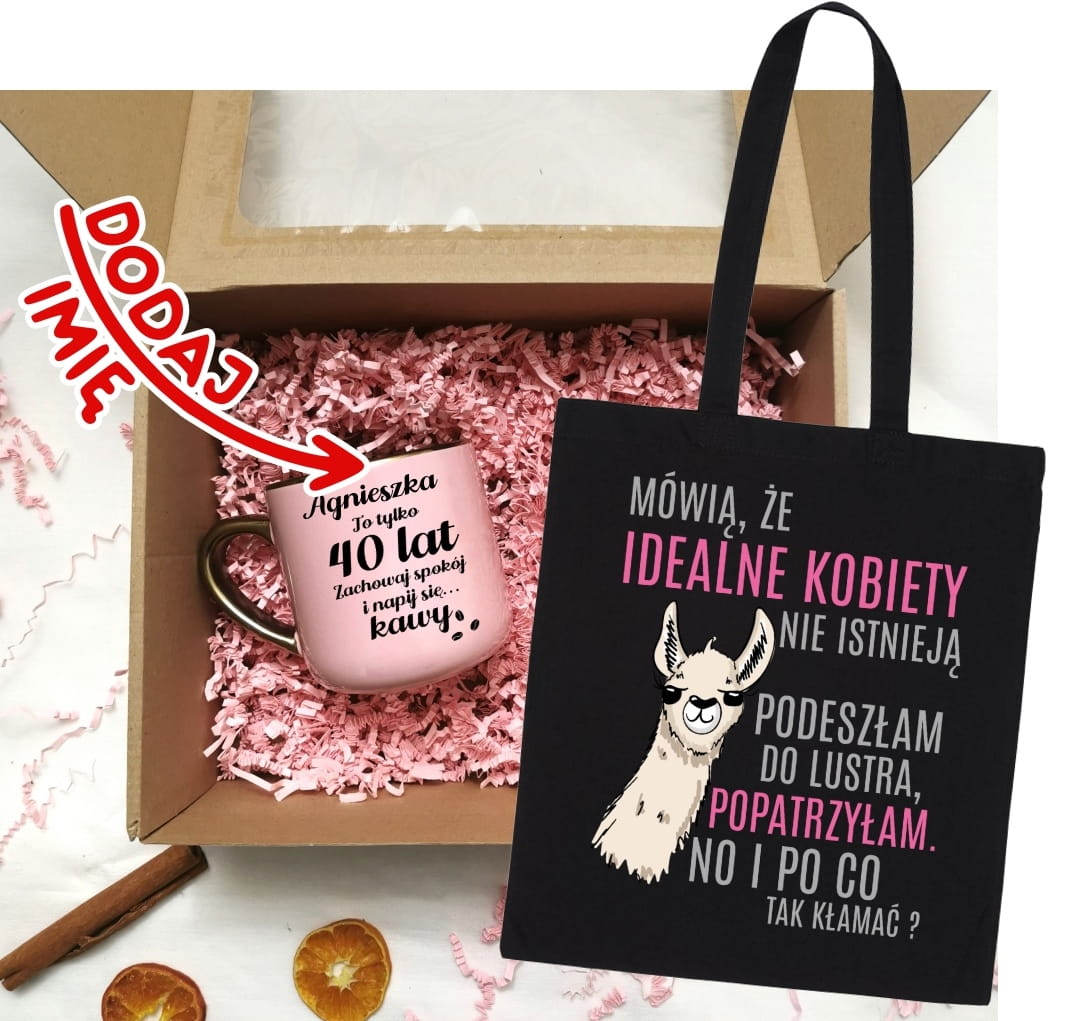 Zestaw prezentowy na 40 urodziny - kubek z imieniem oraz torba