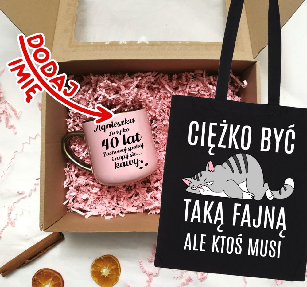 Zestaw prezentowy na 40 urodziny - kubek z imieniem oraz torba