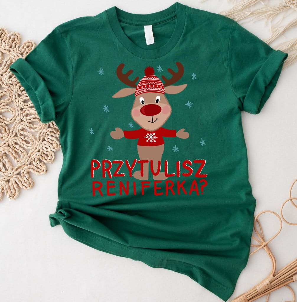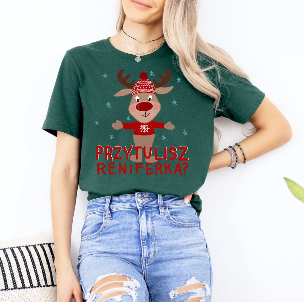 Zielona damska koszulka PRZYTULISZ RENIFERKA