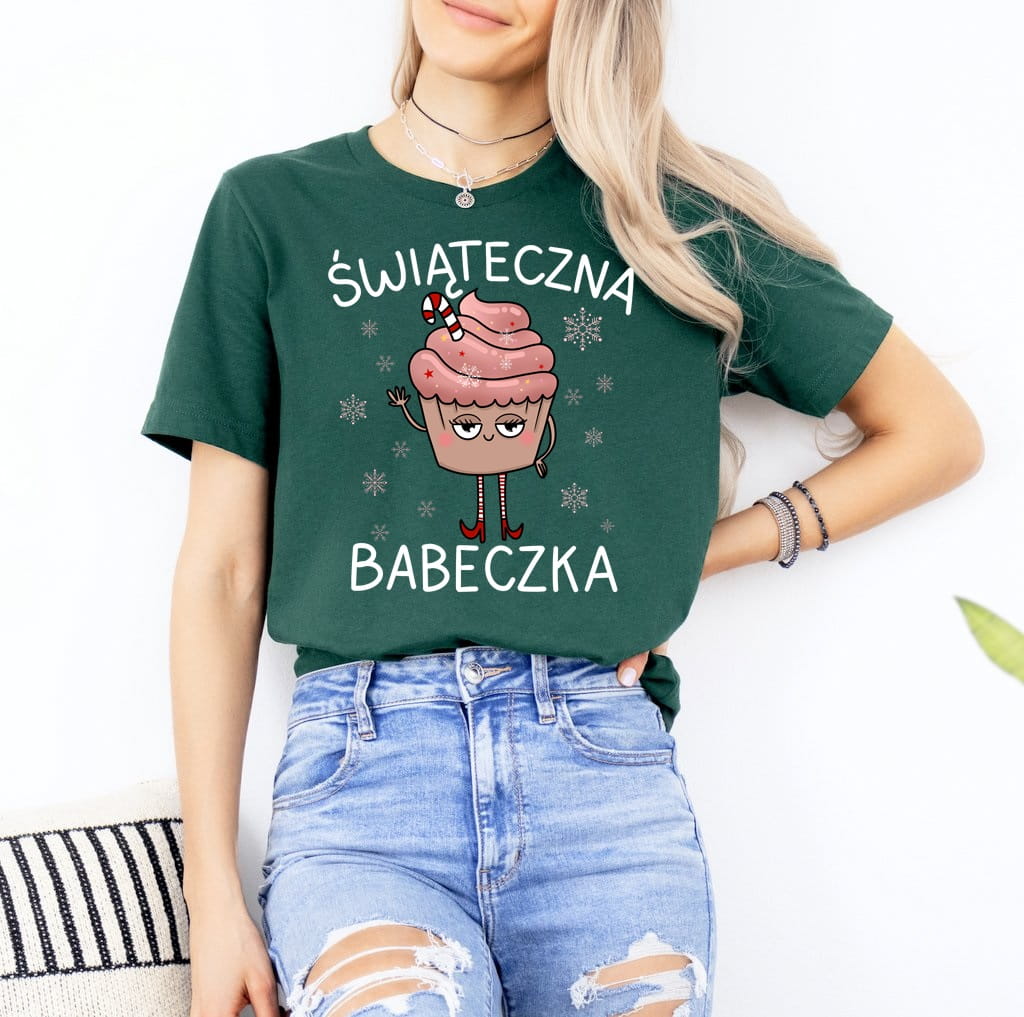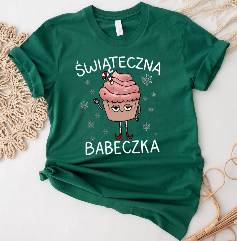 Zielona damska koszulka ŚWIĄTECZNA BABECZKA