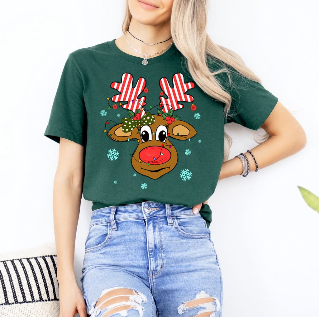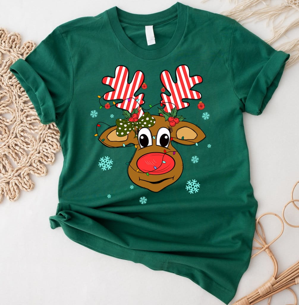 Zielona damska koszulka z reniferem - santa59