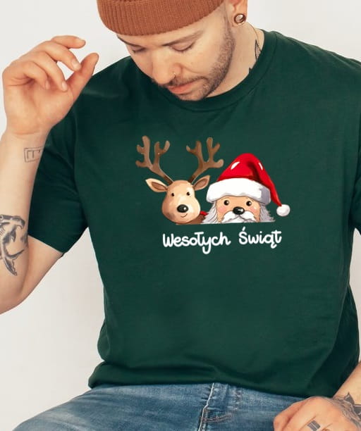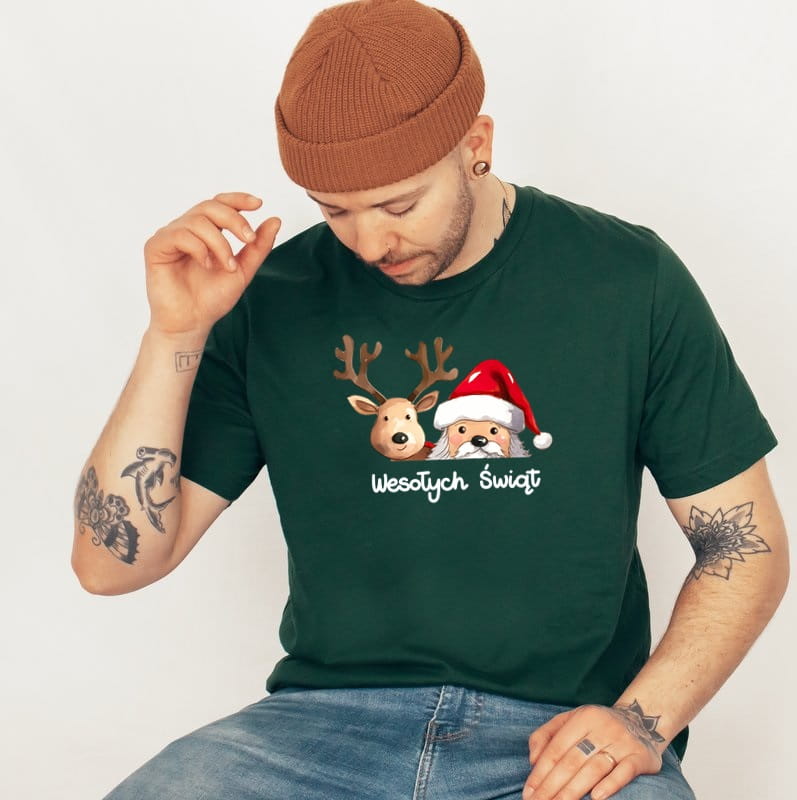 Zielona koszulka z Mikołajem i Reniferem