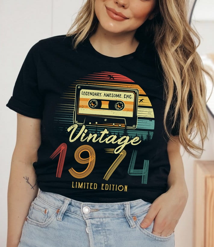 aa damska koszulka na 50 vintage 1974 kolorowe
