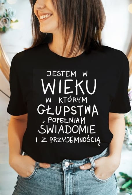aa damska śmieszna koszulka JESTEM W WIEKU