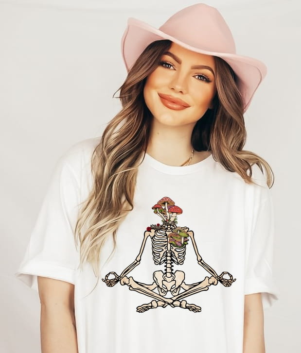 biała koszulka z nadrukiem na lato szkielet8