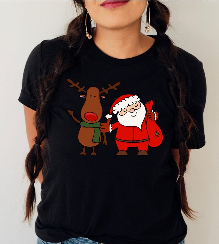 damska koszulka na święta mikołaj z reniferkiem