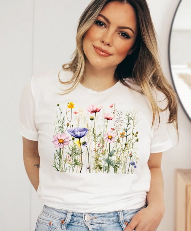 damska koszulka z polnymi kwiatami