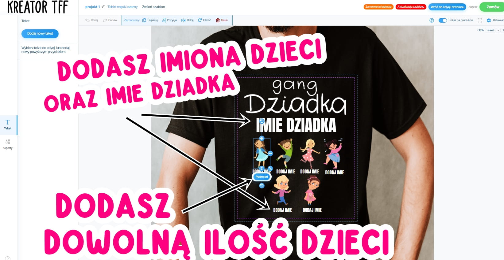 Nadruk zaprojektujesz z odpowiednią ilością dzieci i imion w naszej aplikacji