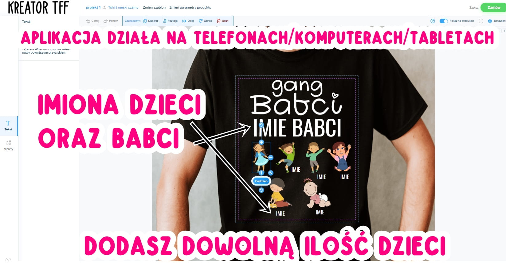 gdzie wybierzesz odpowiednią grafikę i dodasz imiona dzieci.