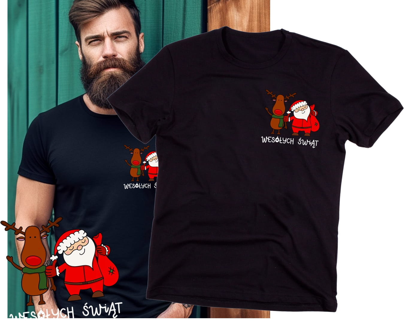Koszulka świąteczna z napisem WESOŁYCH ŚWIĄT Z RYSUNKIEM MIKOŁAJA Z RENIFEREM