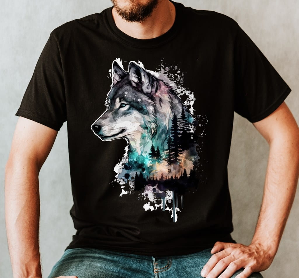 męska koszulka z wilkiem t-shirt czarny wilk17