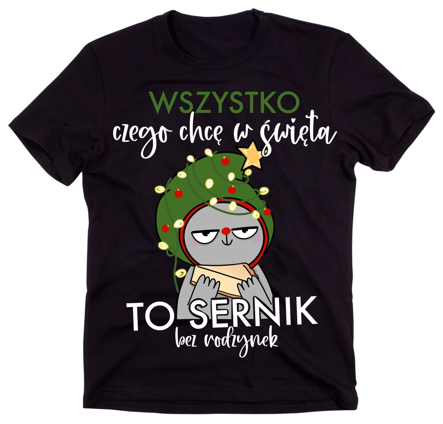 śmieszna męska koszulka wszystko czego chcę na święta to sernik bez rodzynek